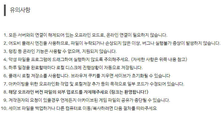 오프라인 실행 및 로컬 저장상황 저장이 가능한 버전입니다.